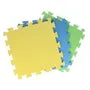 Een set bevat vaak matten in verschillende kleuren, zoals groen, geel en blauw.